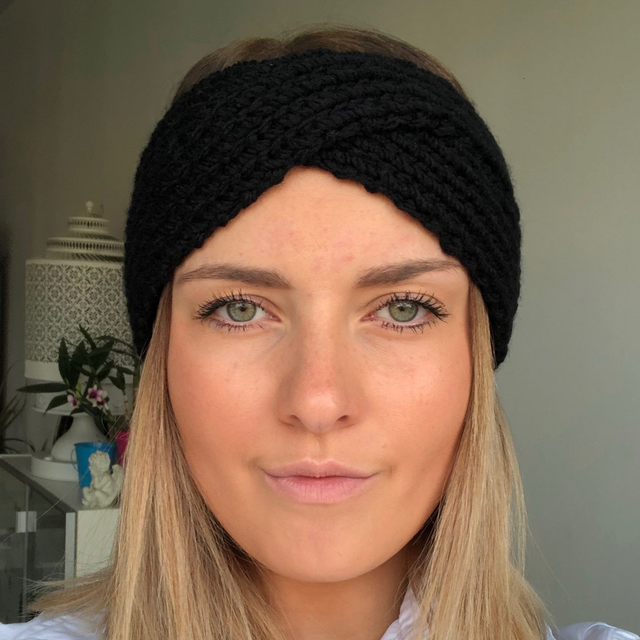 Bandeau forme croisé tricoté main avec de la laine 100% acrylique