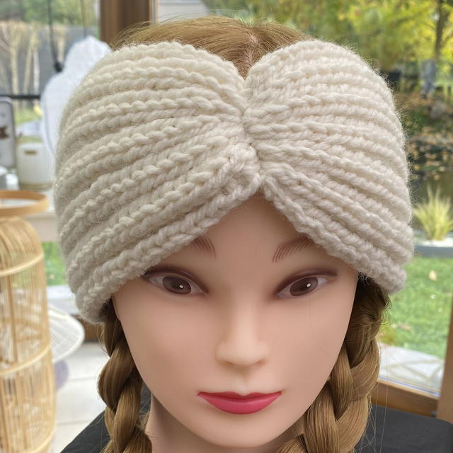 Bandeau large forme pincé tricoté main avec de la laine 100% acrylique