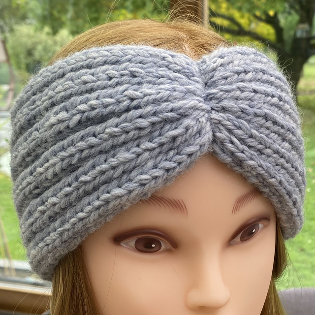 Bandeau large forme pincé tricoté main avec de la laine 100% acrylique