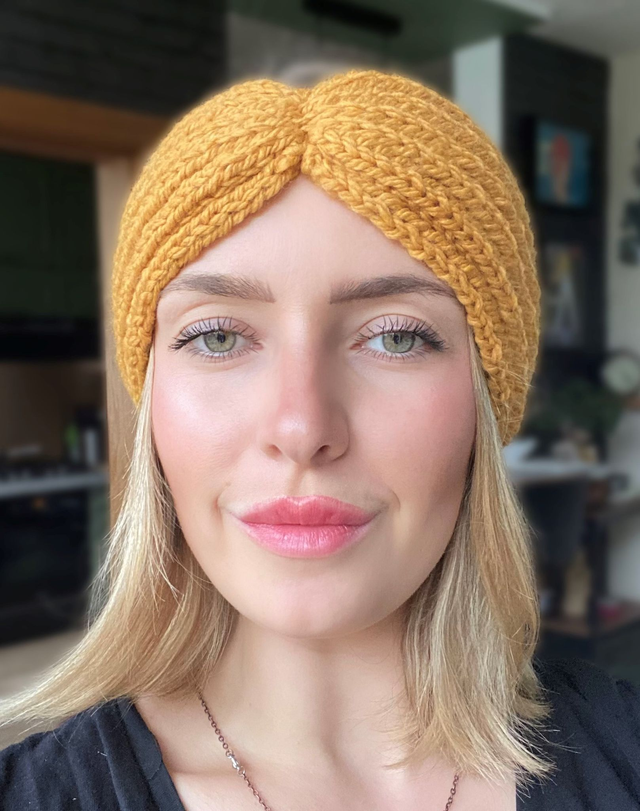Bandeau large forme pincé tricoté main avec de la laine 100% acrylique