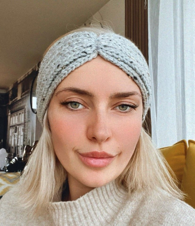 Bandeau large forme pincé tricoté main avec de la laine 80% acrylique, 15% laine, 5% viscose