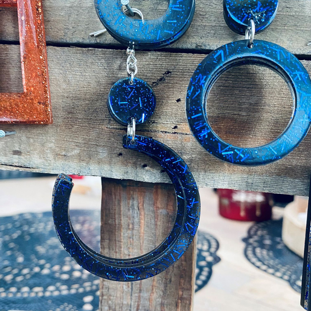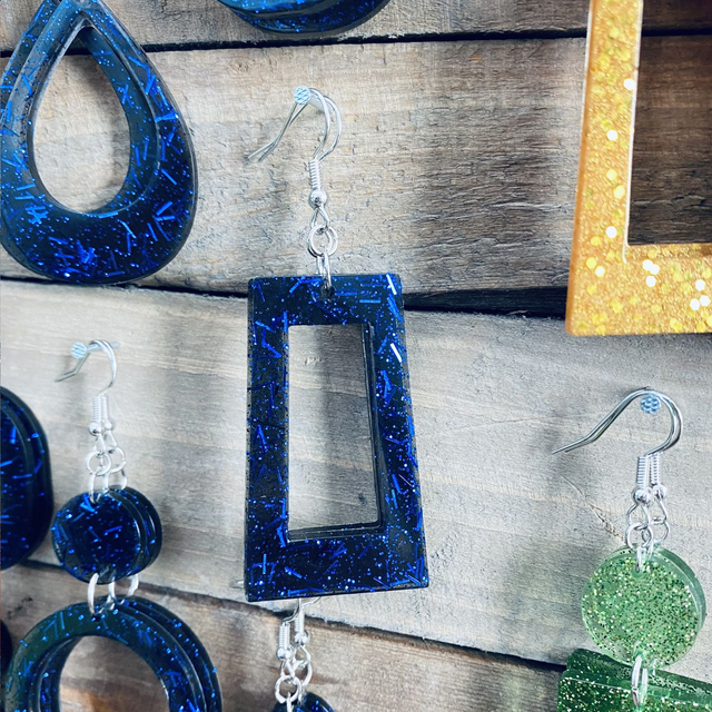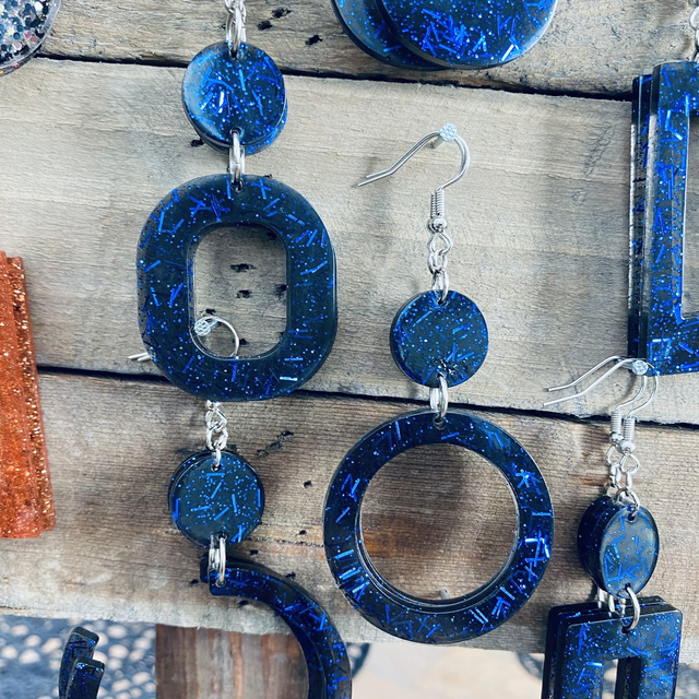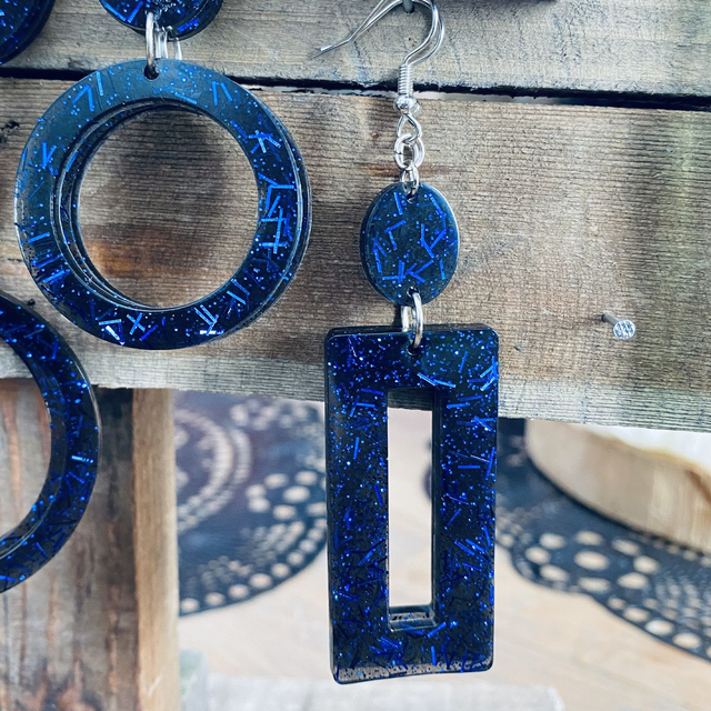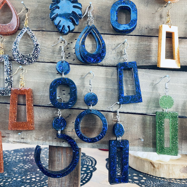 Colliers et Boucles d'oreilles entièrement fait à la main avec une boucle en epoxy incrustée de paillettes. fabrication artisanale et produits uniques au gré de ma créativité.
