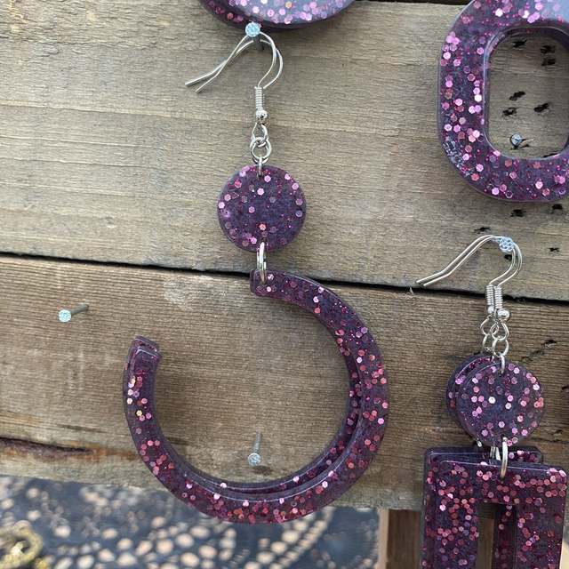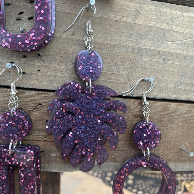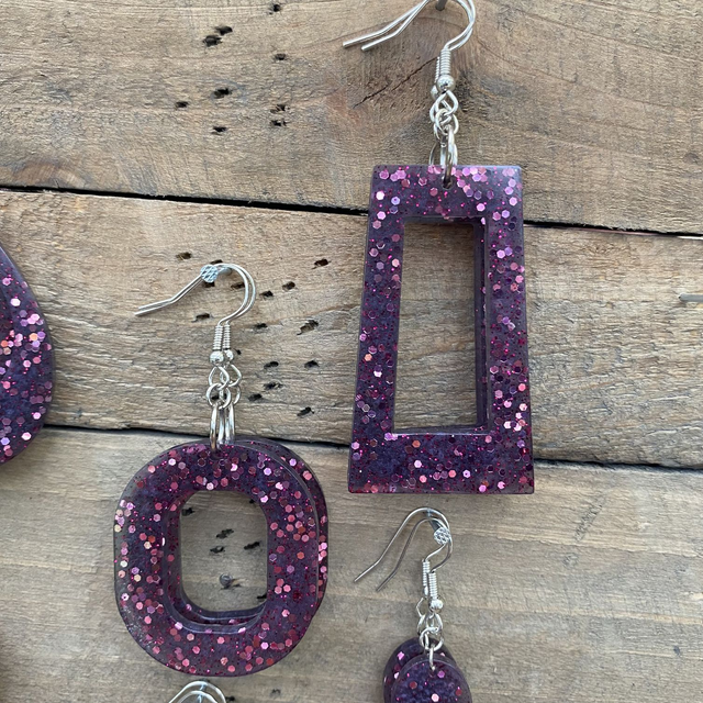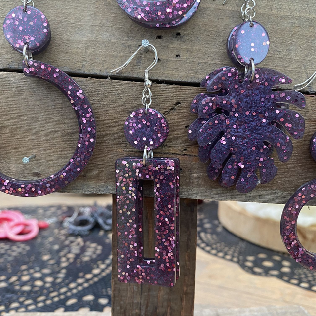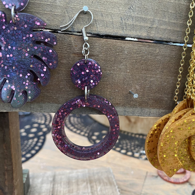Colliers et Boucles d'oreilles entièrement fait à la main avec une boucle en epoxy incrustée de paillettes. fabrication artisanale et produits uniques au gré de ma créativité.