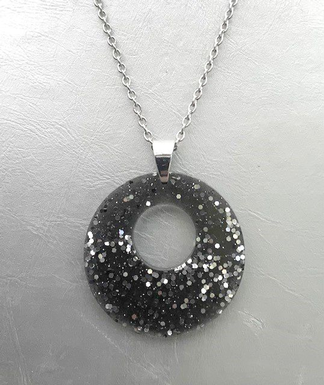 Colliers et Boucles d'oreilles entièrement fait à la main avec une boucle en epoxy incrustée de paillettes. fabrication artisanale et produits uniques au gré de ma créativité.