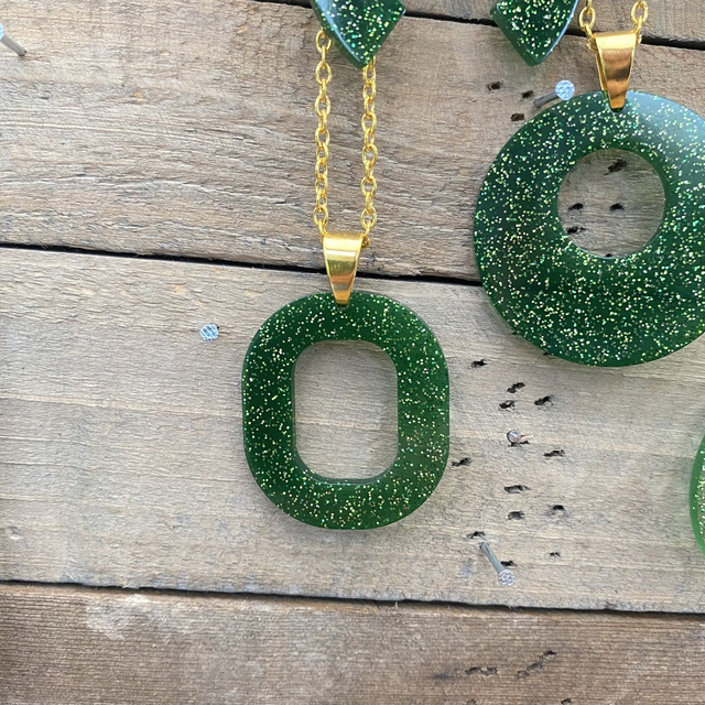 Colliers et Boucles d'oreilles entièrement fait à la main avec une boucle en epoxy incrustée de paillettes. fabrication artisanale et produits uniques au gré de ma créativité.