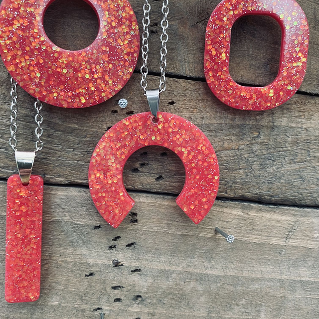 Colliers et Boucles d'oreilles entièrement fait à la main avec une boucle en epoxy incrustée de paillettes. fabrication artisanale et produits uniques au gré de ma créativité.