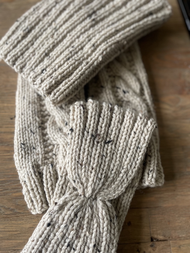 Mitaines tricotées main, laine Tweed 80% acrylique, 15% laine et 5% viscose