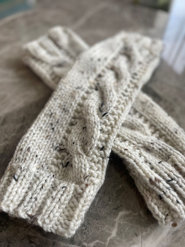 Mitaines tricotées main, laine Tweed 80% acrylique, 15% laine et 5% viscose